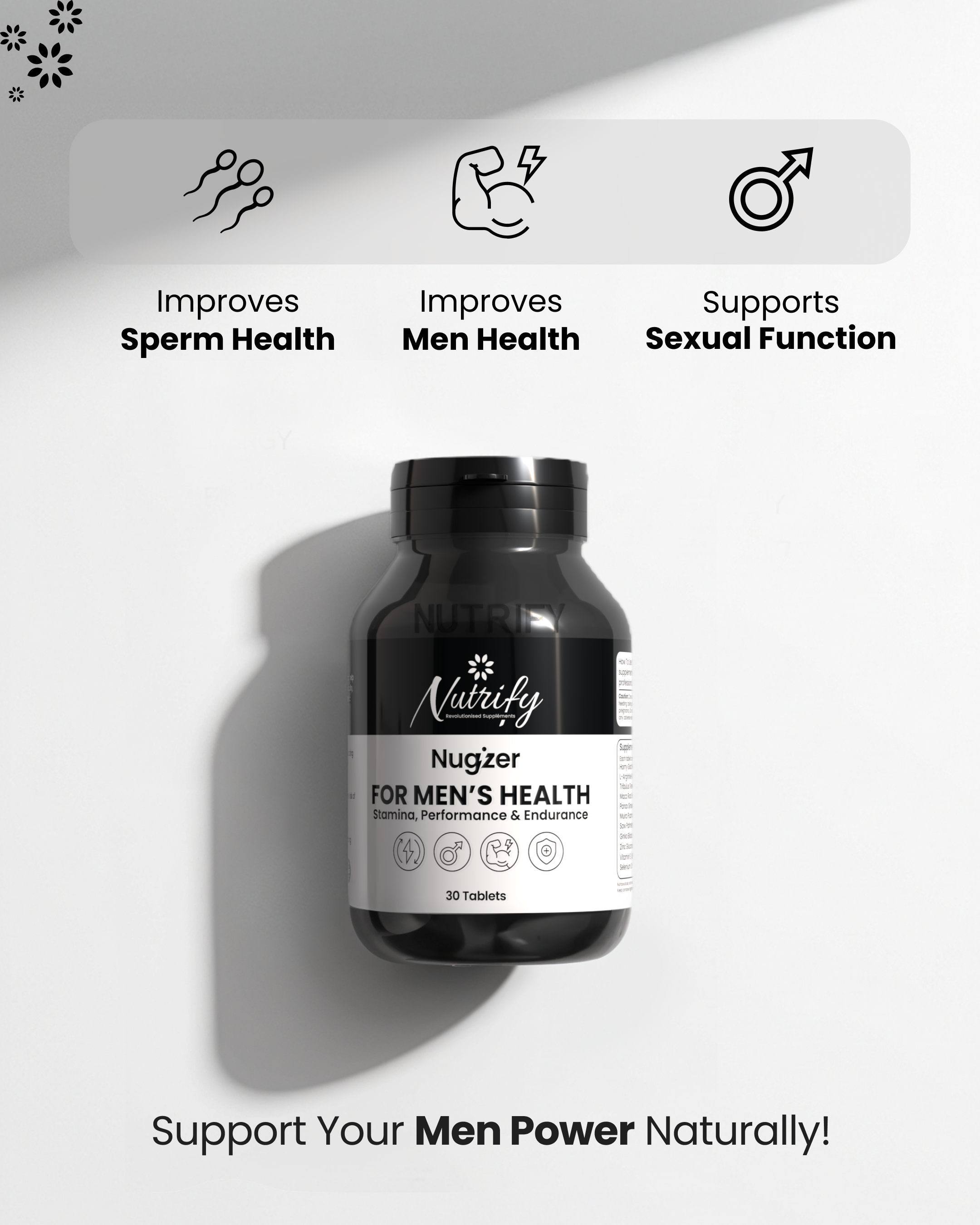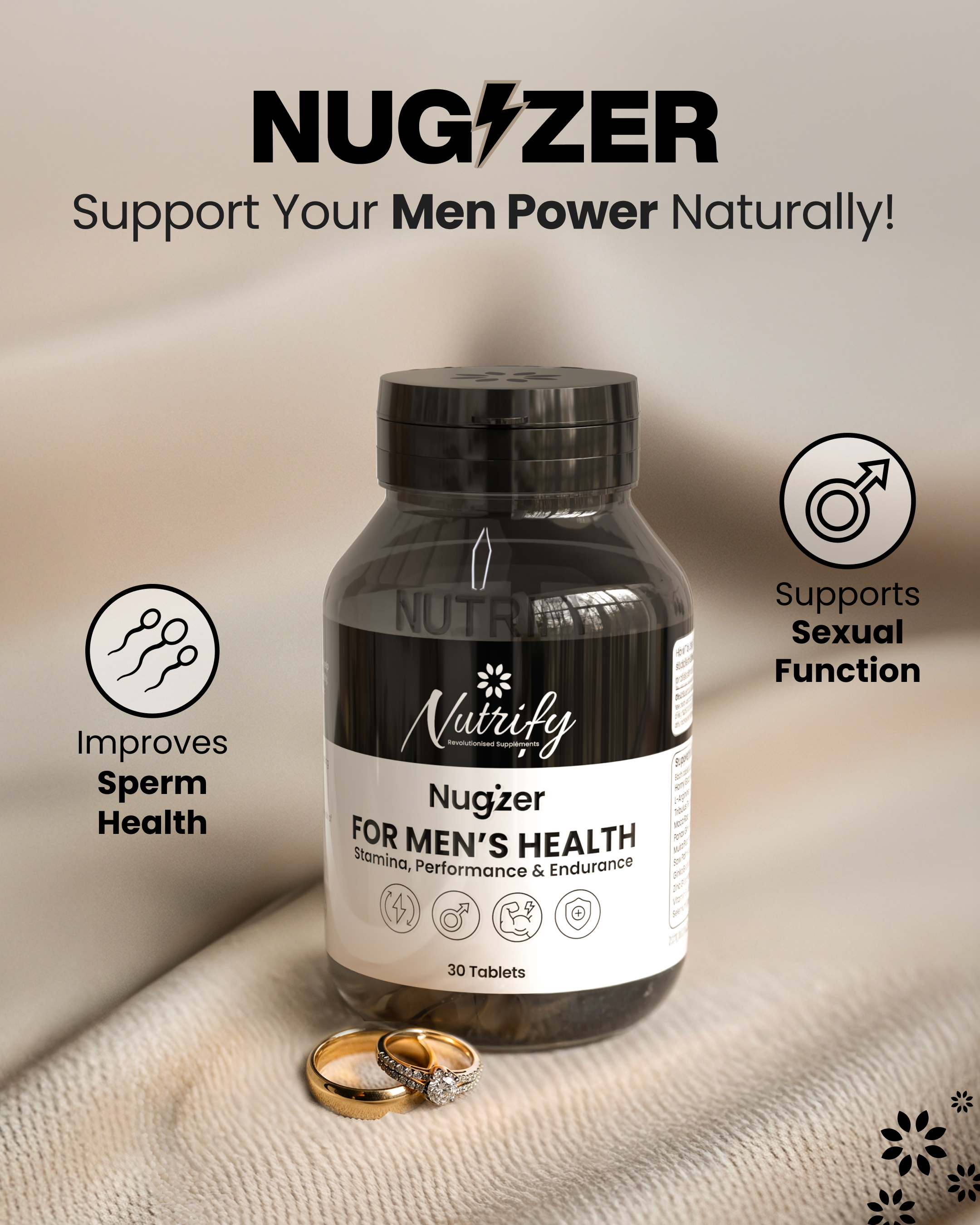 Nutrify’s Nugizer is a scientifically formulated men's health supplement designed to enhance performance, boost stamina, and revitalize vitality. Each tablet contains a powerful blend of 11 vital nutrients that work synergistically to support men's reproductive health and overall wellness.
