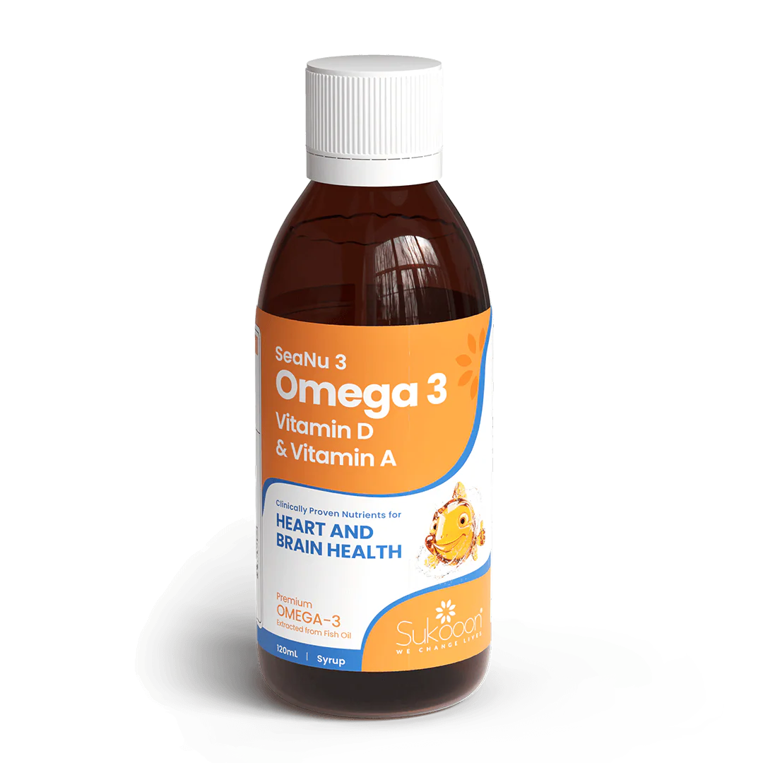 SeaNu 3 is a premium nutritional syrup combining Omega-3 fatty acids, Vitamin D, and Vitamin A to support heart, brain, and overall health. This carefully formulated blend provides essential nutrients that are clinically recognized for supporting cognitive function, vision, immune defense, and bone strength in both children and adults.
